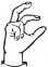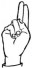 На ћирилици написано СЕРГЕЈ БИЗУМИЋ састоји се из 13 слова [?]. Исписано ћириличном једноручном азбуком за глувонеме: